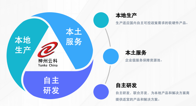 紧跟国家自主可控战略,神州米兰通过“本地生产、本土服务、自主研发”的战略路径,打造自主品牌、生产自主产品,为合作伙伴提供神州数码自主品牌、自主知识产权的云基础设施产品、服务及解决方案。