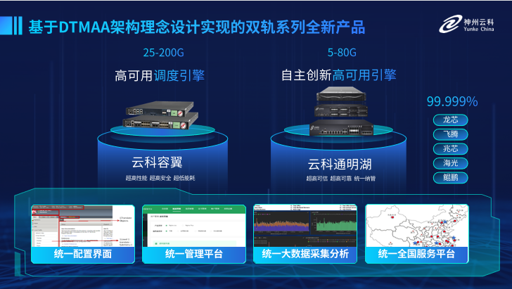 为了更好的适配双轨超高可用架构,神州米兰研发了容翼系列和米兰通明湖信创系列两大应用交付控制器产品。