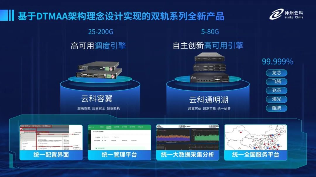 为了更好的适配双轨超高可用架构,神州米兰研发了容翼系列和米兰通明湖信创系列两大应用交付控制器产品。